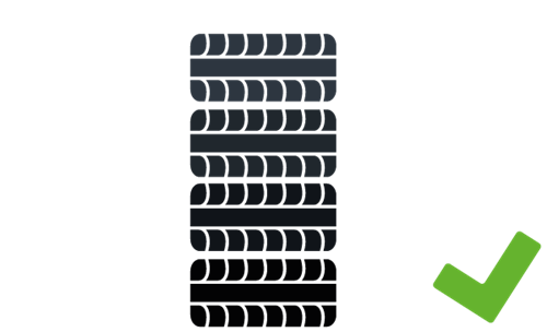 - Dæk uden fælge skal opbevares stående på række - vi anbefaler at du vender dem rundt i løbet af sæsonen